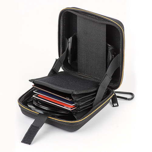 Cokin クリエイティブフィルター Mサイズ(Pシリーズ・84mm幅)のフィルターに対応するセミハードフィルターポーチです。フィルター5枚、アダプターリング3つ、フィルターホルダー1つをコンパクトに収納でき、しっかりとした外装がフィルター等を衝撃から守ります。