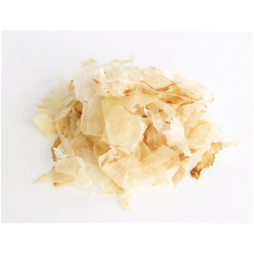 低脂肪のまぐろを特殊製法で丹念に削った少し大きめの薄花タイプ。旨み・風味が際立つライトな食感。