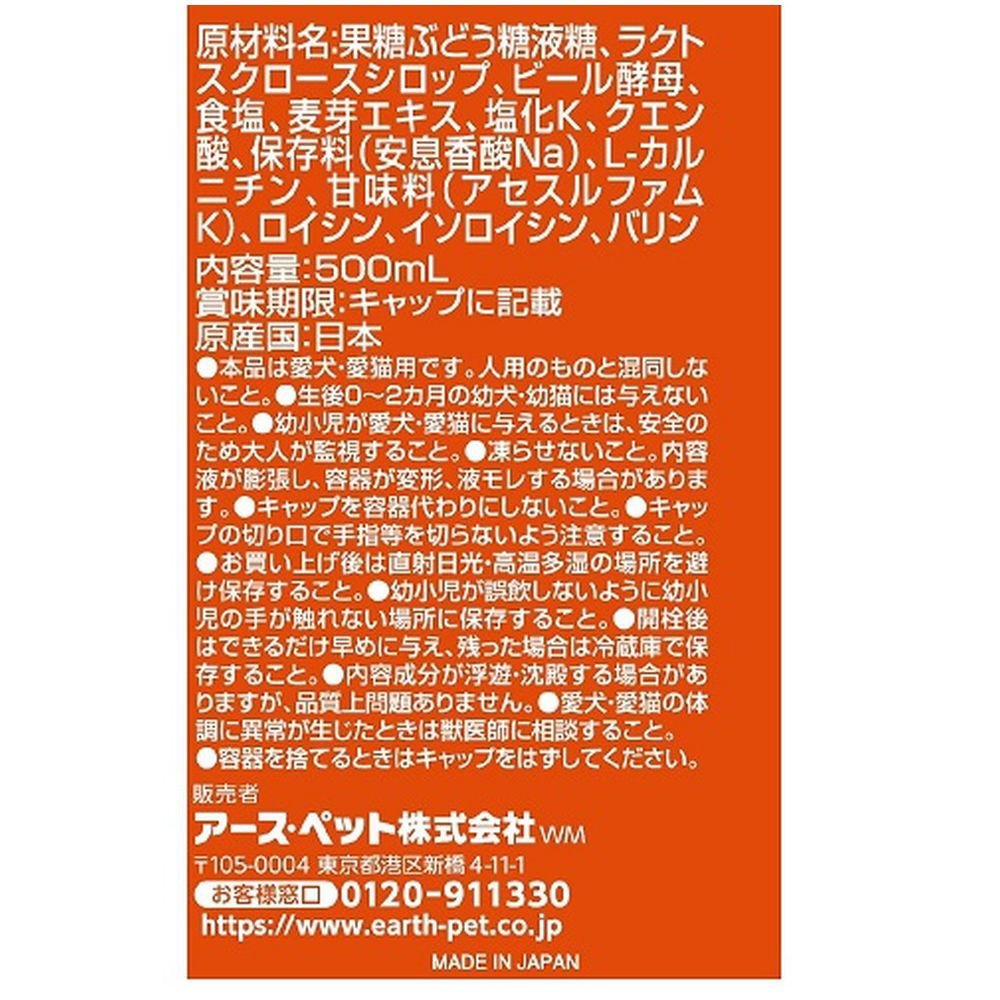 BCAAとL-カルニチン配合のペット用健康サポート飲料でアミノ酸が豊富なビール酵母、麦芽エキス配合。500ml