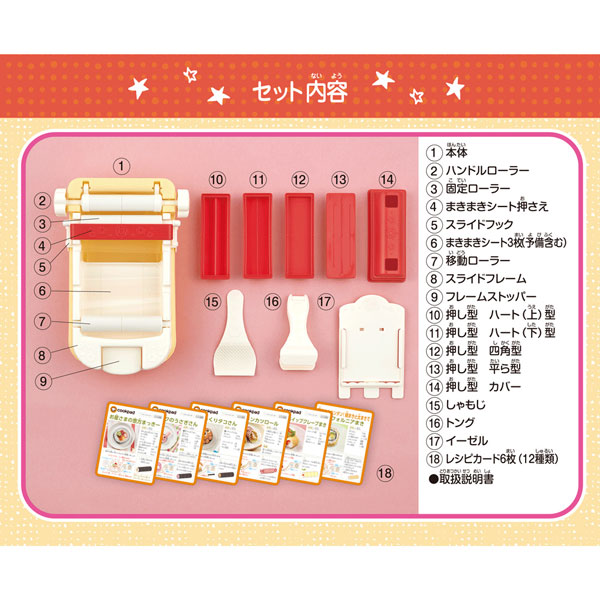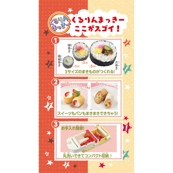 1cm、3cm、5cmと3種類の海苔巻きがカンタンキレイにできるクッキングトイです。