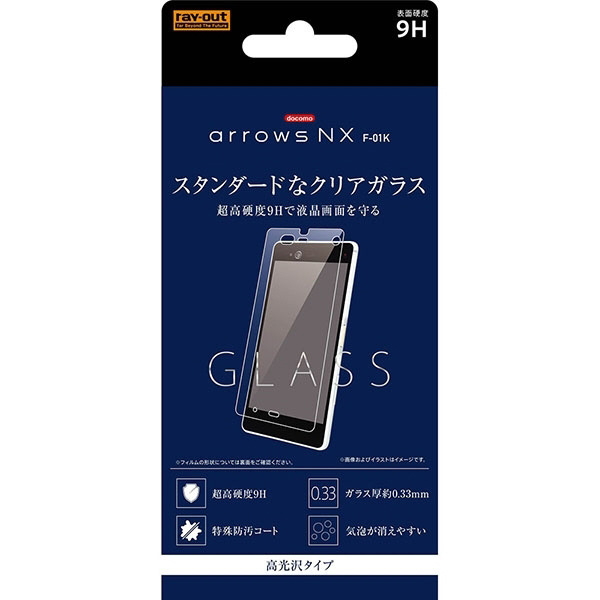 【在庫限り】 arrows NX F-01K用 ガラスフィルム 9H 光沢 ソーダガラス (株)レイ・アウト RT-ARK1F/SCG