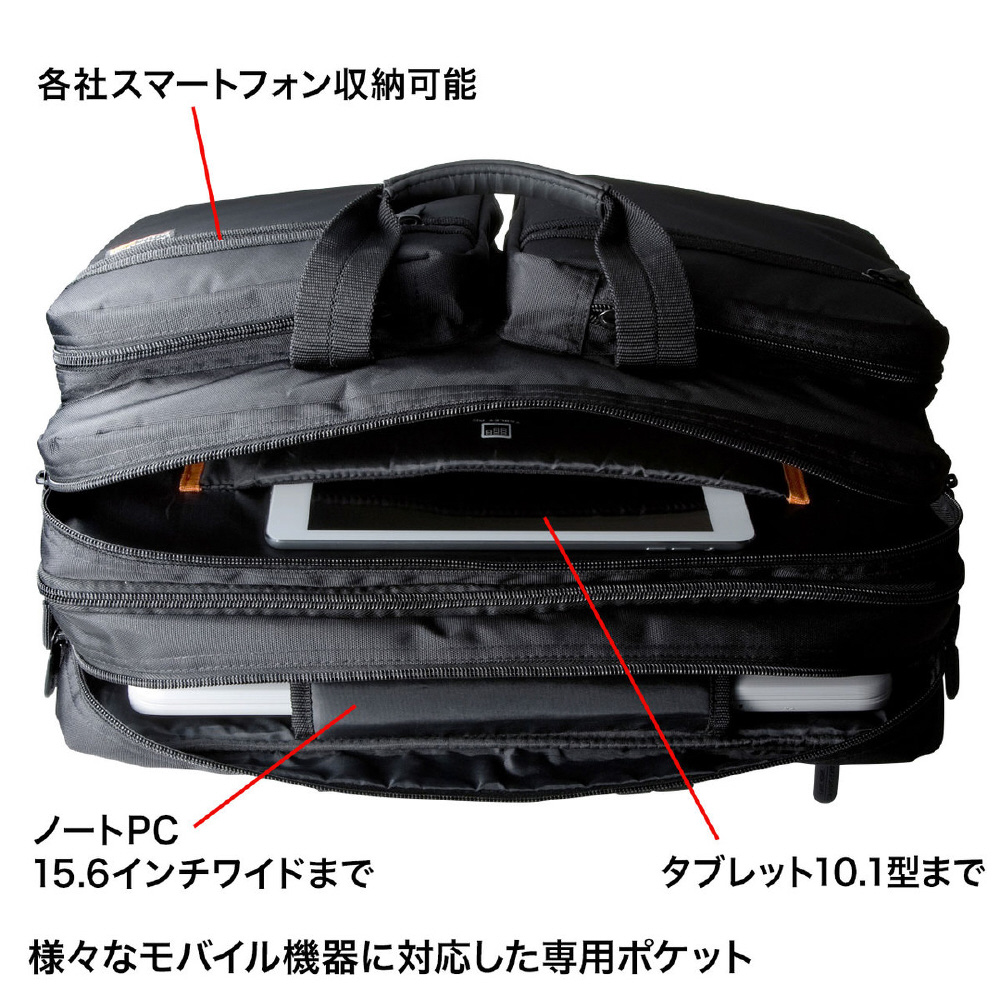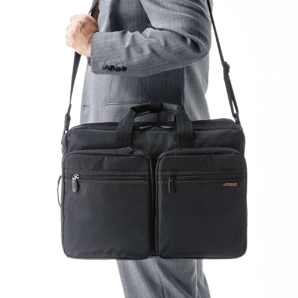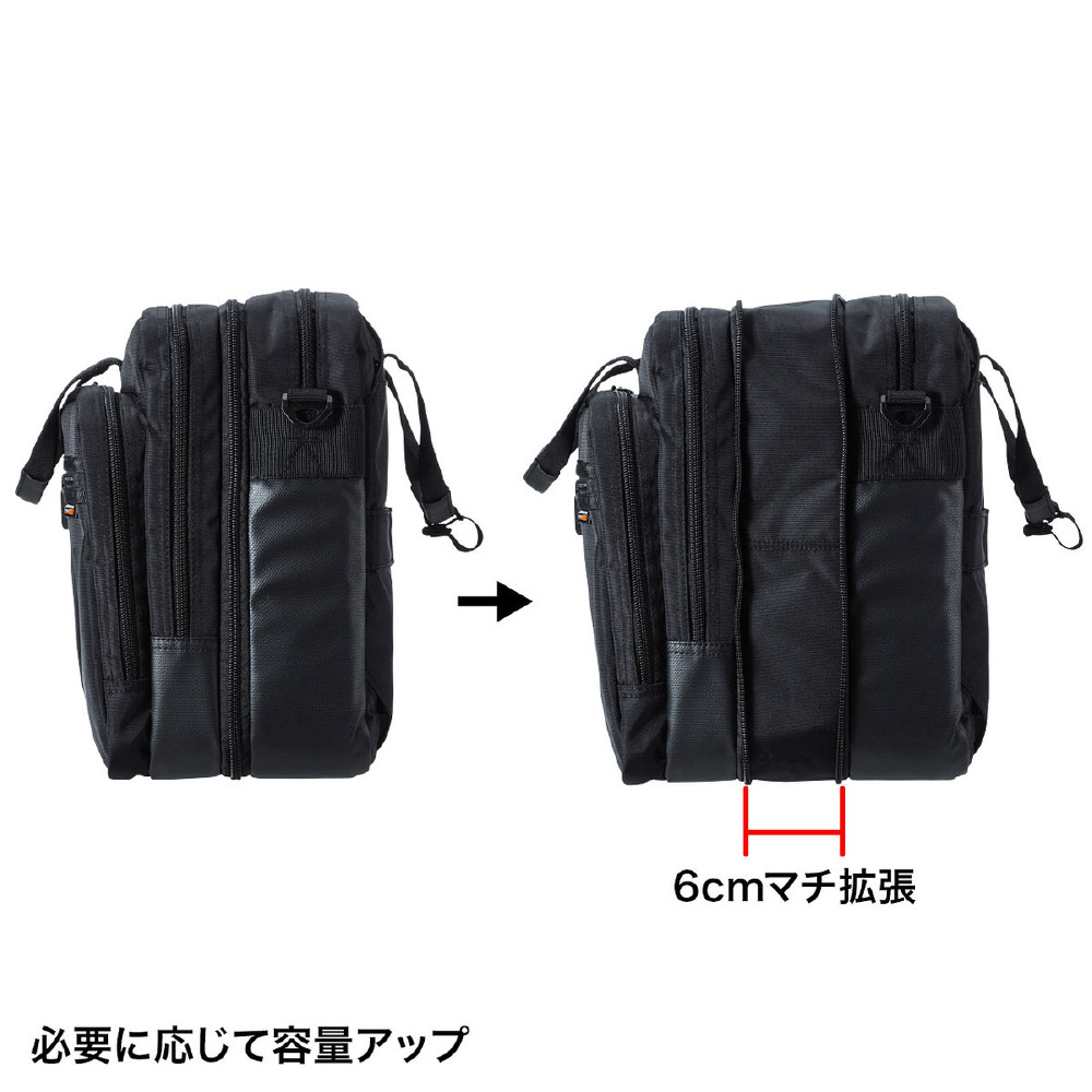 マチ拡張で大容量、出張に便利な軽量3WAY大型ビジネスバッグ。15.6インチワイドノートパソコン&10.1インチまでのタブレット収納対応。ブラック。
