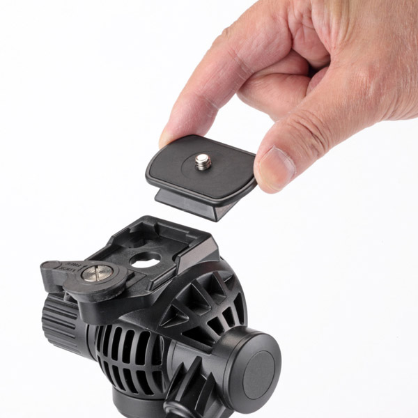 カメラの着脱がワンタッチ。複数のカメラを使う場合やカメラとビデオカメラを両方使う場合などにも大変便利です。