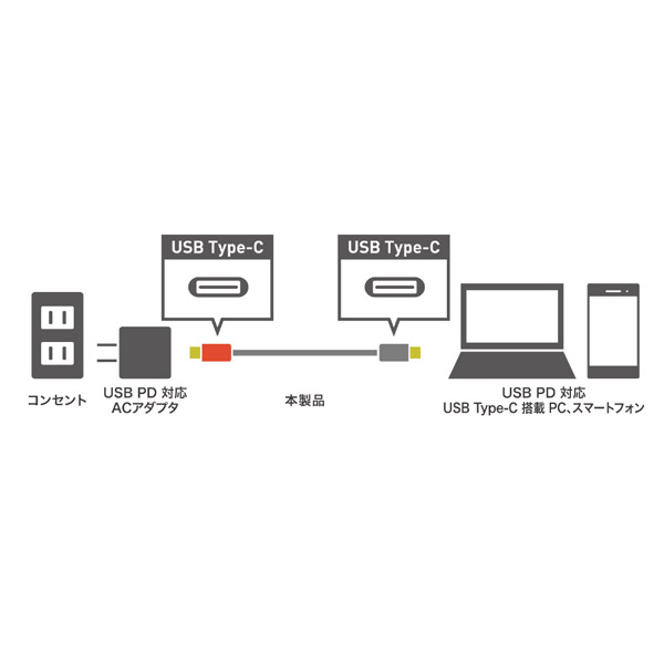 USB PD 対応、eMarker内蔵のUSB Type-C 充電ケーブル