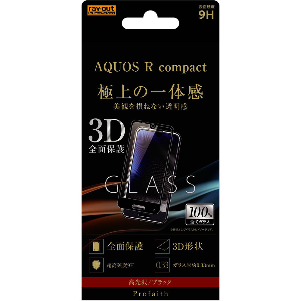 AQUOS R compact用 ガラスフィルム 3D 9H 全面保護 光沢/ブラック RT-AQRCORFG/CB