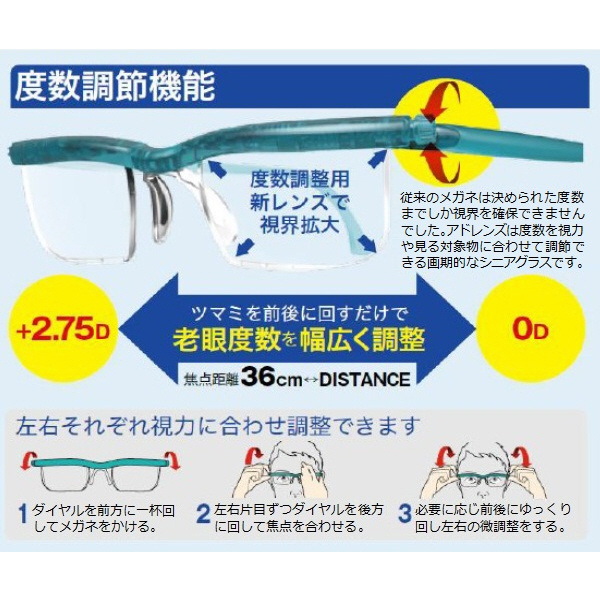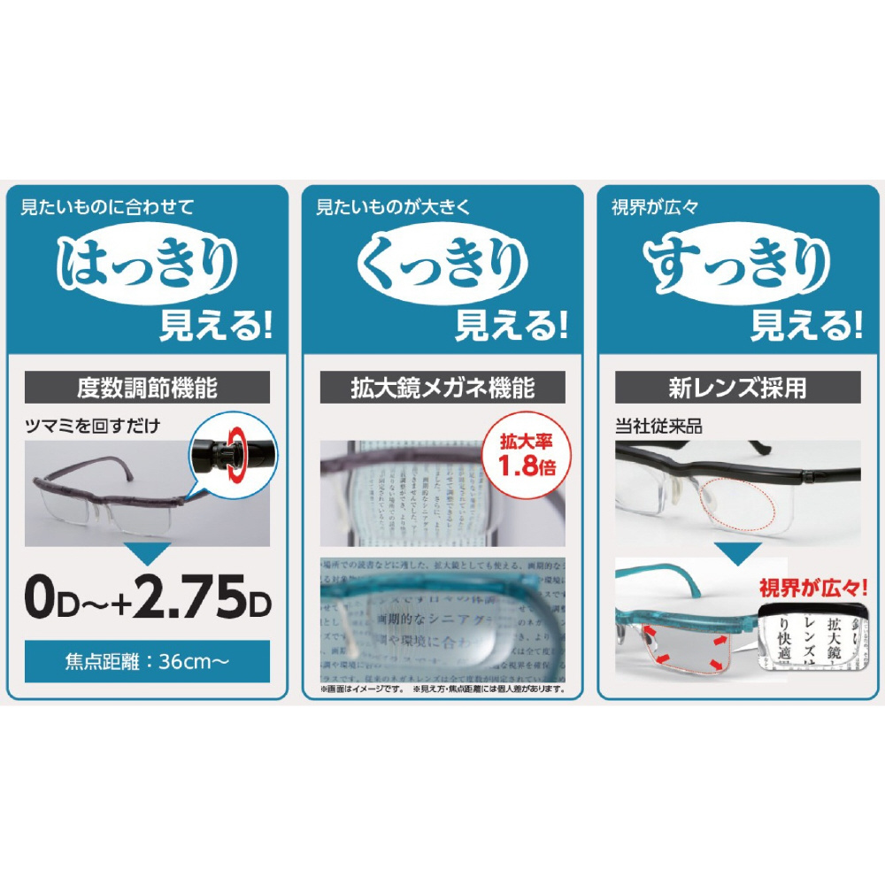 【度数調節メガネ】ユーズーム スクリーンプロテクト(シアン/1.8倍) プレスビー|Presby