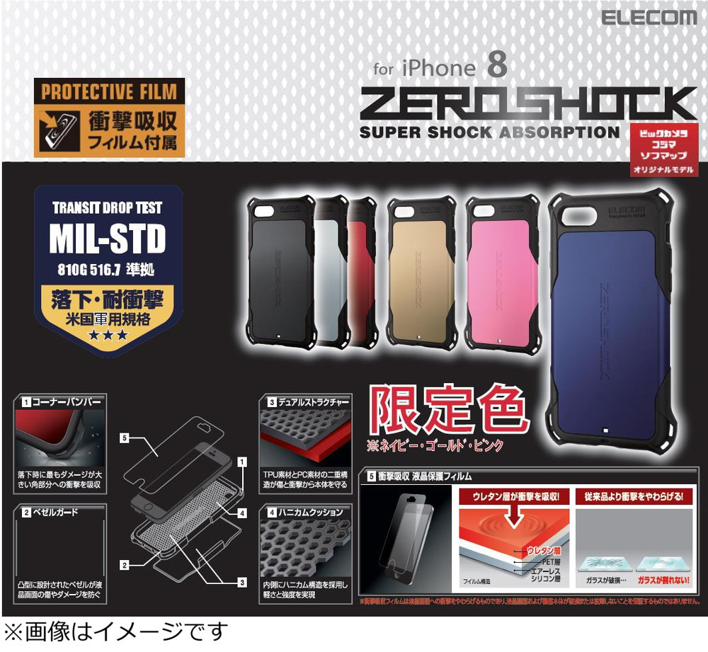 iPhone 8、iPhone 7用 全方向の衝撃からiPhoneを守るZEROSHOCKケースです。