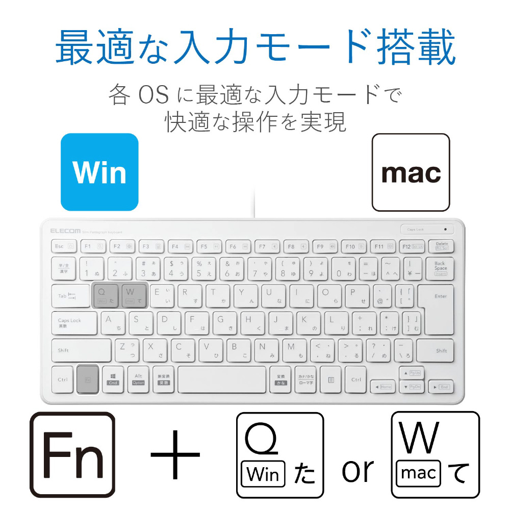 有線ミニキーボード/パンタグラフ式/ホワイト 【864】