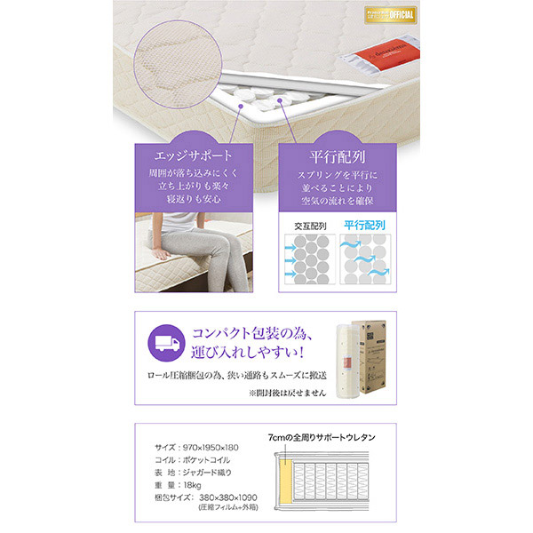 【マットレス】フランスベッド LaDeuxieme(ラ・ドゥーゼム)ポケットコイルマットレス DE-P100(シングルサイズ) DEP100S