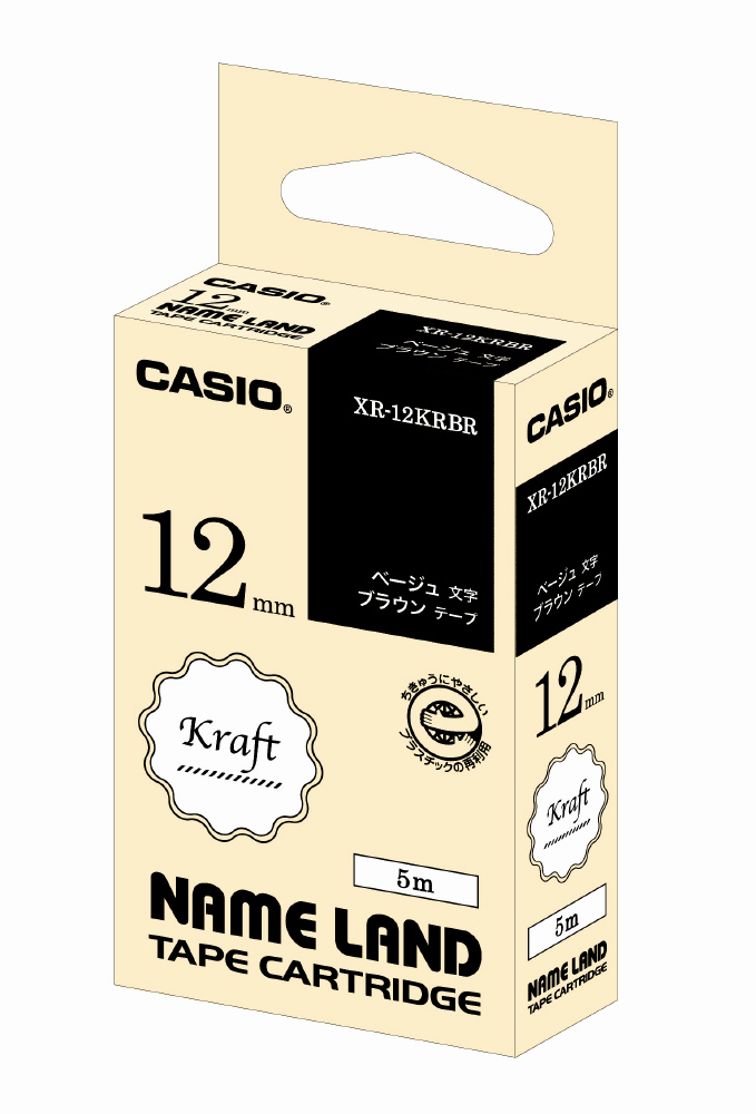 | 商品名 | ネームランドテープ(NAME LAND) クラフトテープ (ブラウン/ベージュ文字/12mm幅) XR-12KRBR |