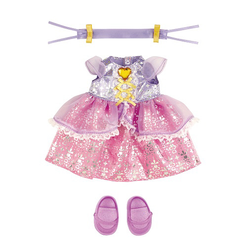 ピンクとパープルのステキなカラーリング、キラキラのプリントで“ちょっぴり”おねえさんなロングドレスのきせかえセットです。
