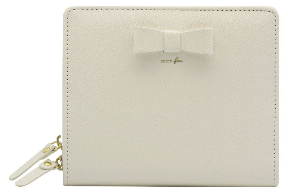 リボンがかわいい!汚れに強いサフィアーノ調レザーを採用した電子辞書ケース”DICT.fem”。