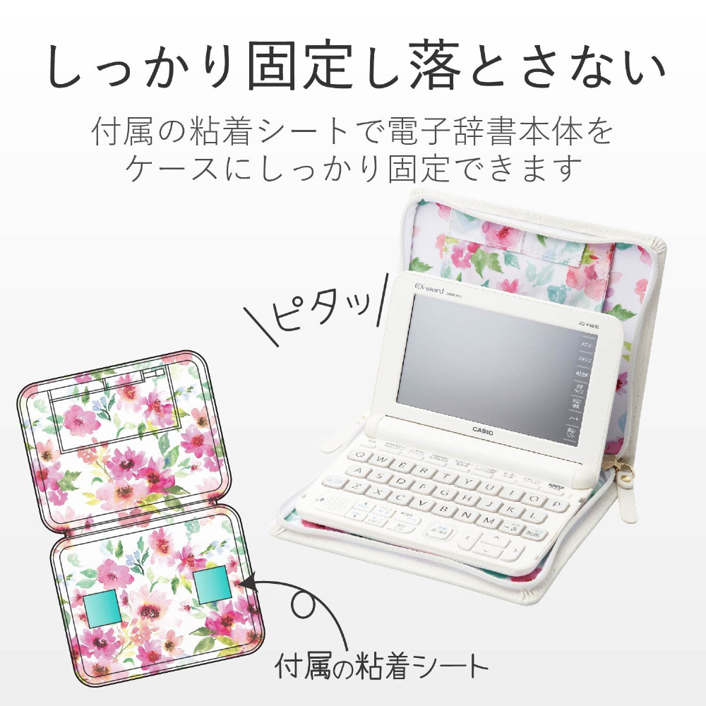 ■リボンがかわいい電子辞書ケース”DICT.fem”です。■ケースには傷や汚れに強いサフィアーノ調レザーを採用しています。■ケース内側には華やかでかわいい花柄を採用しています。■ダブルファスナーを採用していますので、電子辞書本体を容易に出し入れ可能です。■メディアカードやちょっとしたメモなどを収納できるインナーポケットがついています。■インナーポケット表面には、タッチペンを差し込んで収納できるタッチペンポケットがついています。■付属の粘着シートで電子辞書本体をケースにしっかりと固定できます。貼り直しも可能です。