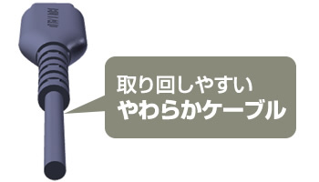 TPE(熱可塑性エラストマー)素材を採用し、屈曲耐久性に優れた細く柔らかいケーブルを実現しました。