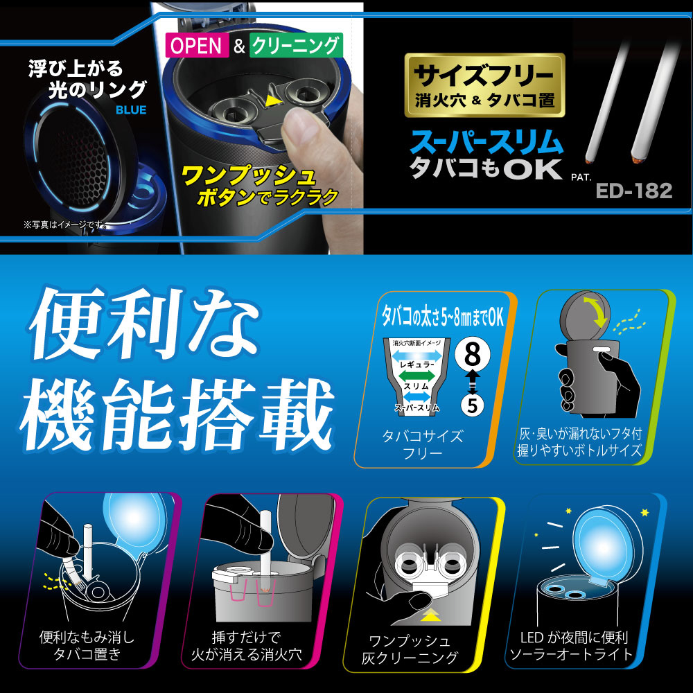 | 商品名 | 車内用品 EXEA(エクセア) 灰皿 ソーラーリングアッシュ カラー:ブラック ドリンクホルダー型 LED付き |