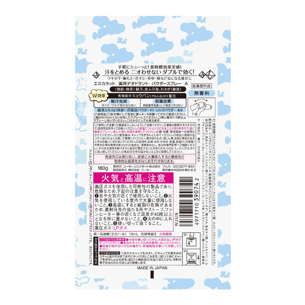 S・CARAT(エスカラット) 薬用デオドラント パウダースプレー(無香料)(180g)〔デオドラント〕