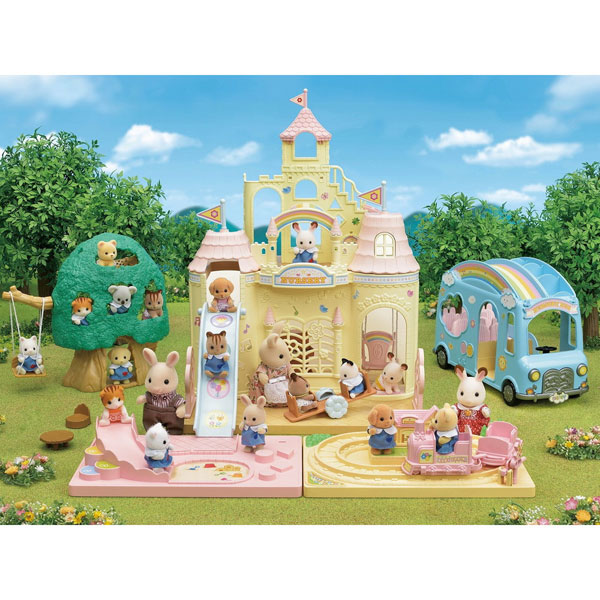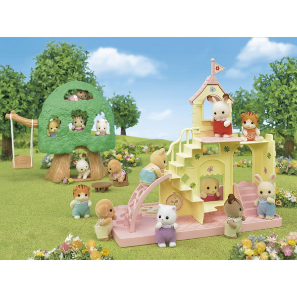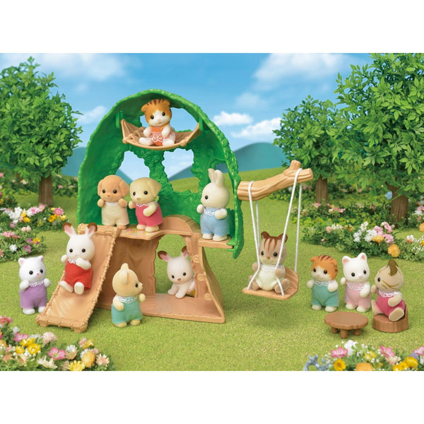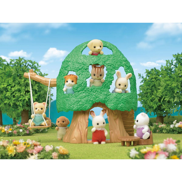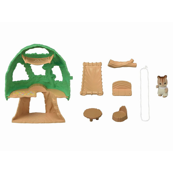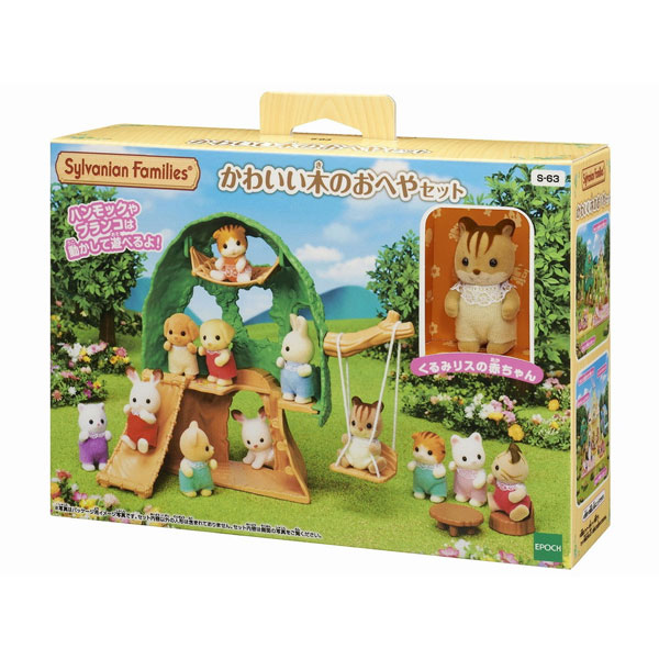 赤ちゃんたちが楽しく遊べる、かわいらしい木のおへやと、くるみリスの赤ちゃんのセットです。