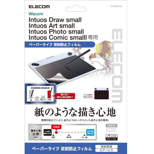 ワコムペンタブレット Intuosシリーズ(small)の操作面を傷や汚れから守る、指紋防止ペーパーライク反射防止タイプの保護フィルムです。特殊表面形状デザインにより紙に鉛筆で描いたような描き心地を実現します。