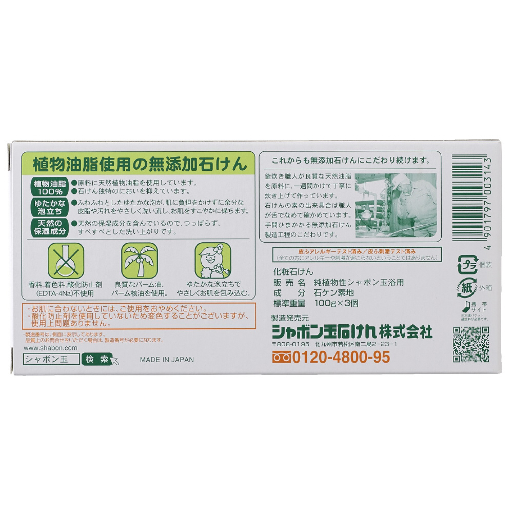 | 商品名 | 純植物性シャボン玉浴用 (3個) 〔ボディソープ(固形石鹸)〕 |
