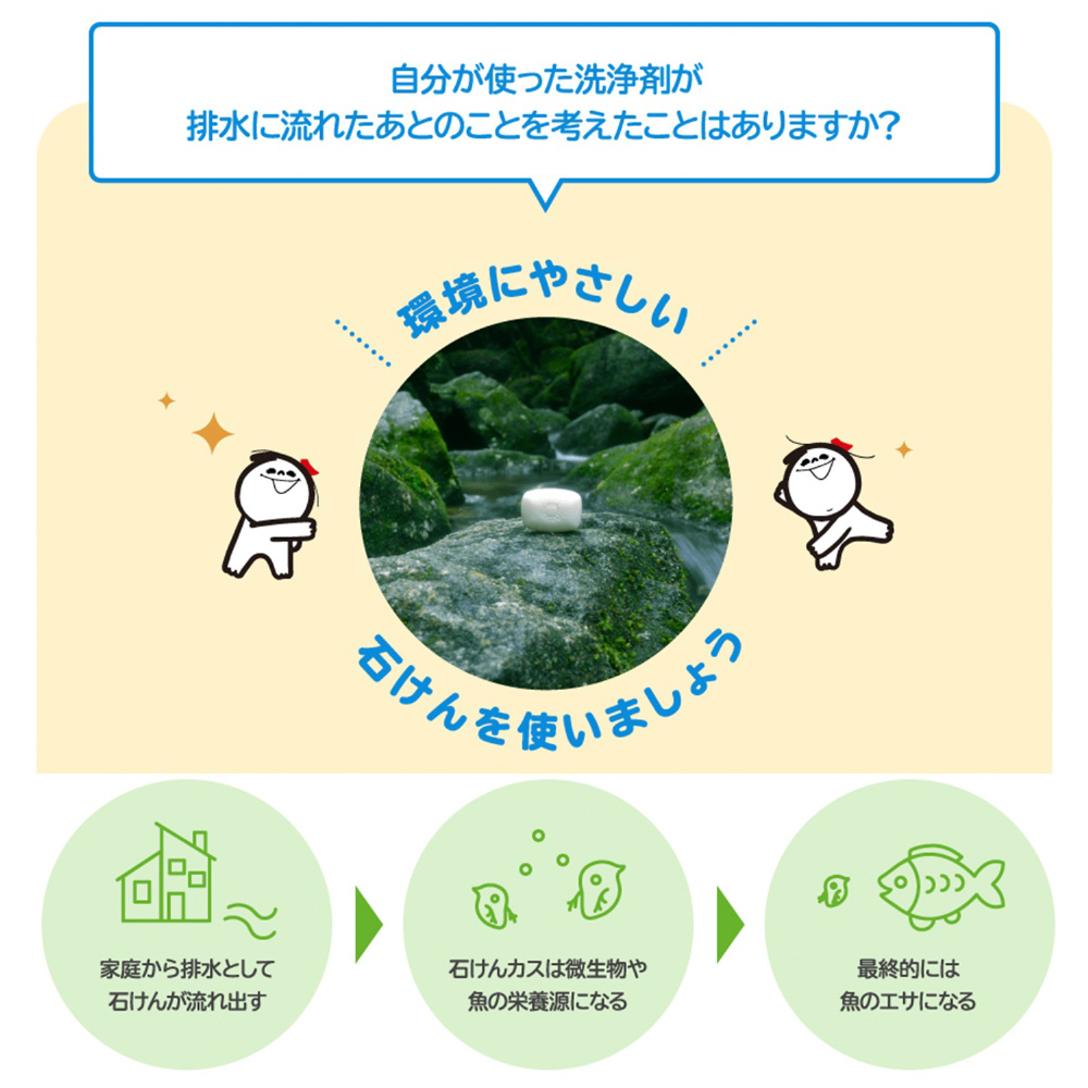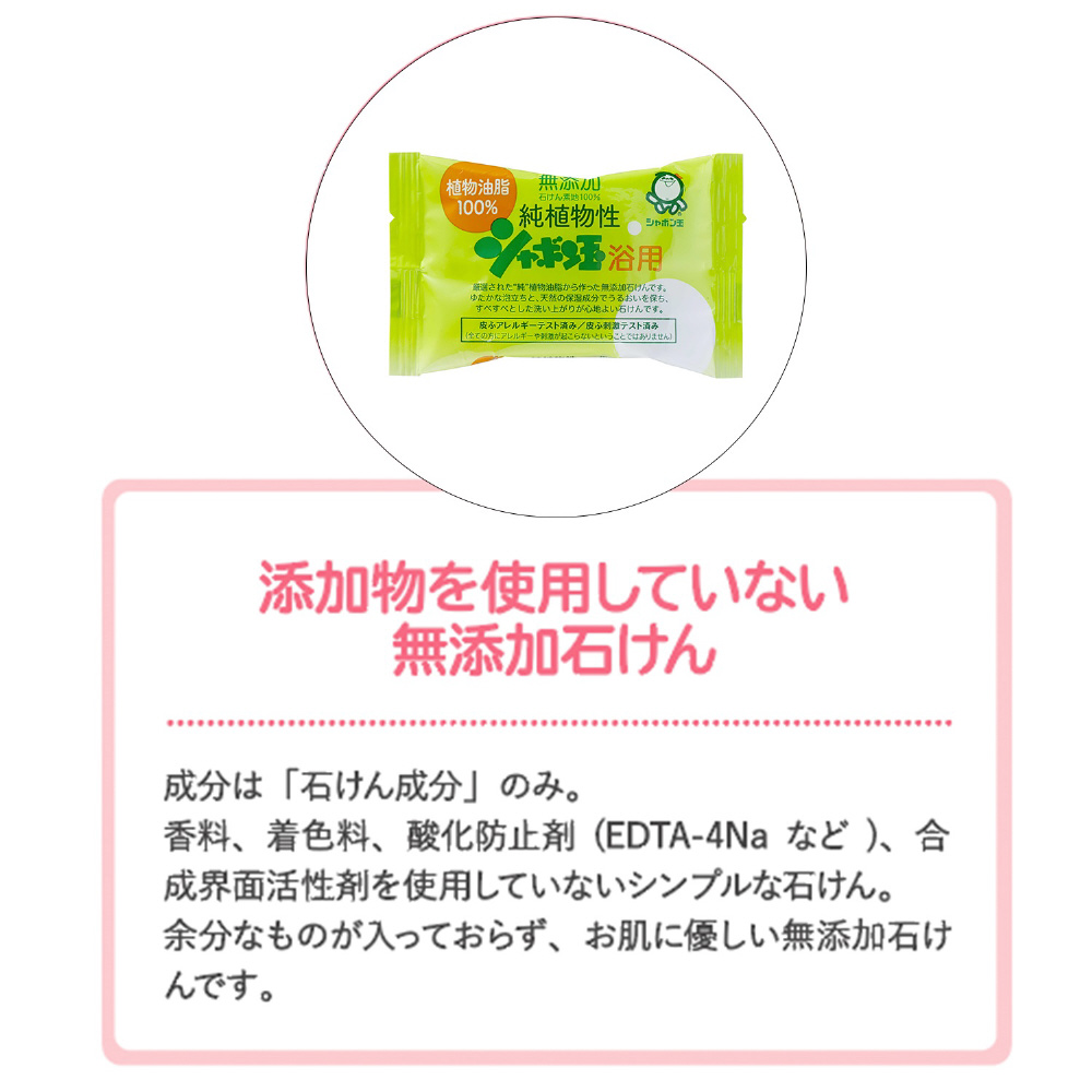酸化防止剤・色素・香料を使用していない無添加石けん。