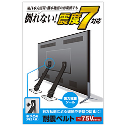 ■地震対策に!震度7相当の振動試験もクリアした、テレビ裏面のVESA穴を利用した、テレビの前方への転倒を防止する”ネジどめタイプの耐震ベルト”です。■東日本大震災・熊本地震など震度7相当の振動試験をクリアしています。■テレビ背面にあるVESA穴(壁掛け用取り付けネジ穴)を利用します。■ベルト長さを調整して、ベルト片側をテレビ背面のネジ穴に取り付け、固定パーツ側を設置場所へ貼り付けることで、前方への転倒を防止します。■ベルト長を調節できるので設置場所を選びません。■粘着を安定させるため、設置後72時間は動かさないようにしてください。