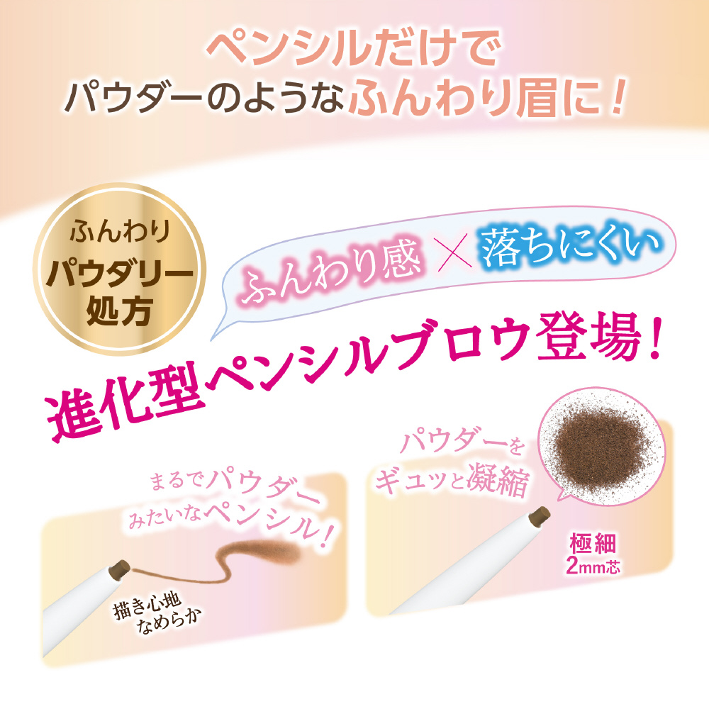 ペンシルなのにふんわりパウダリーな眉が完成!1本でペンシル&ブラシがついた2機能アイブロウペンシル。