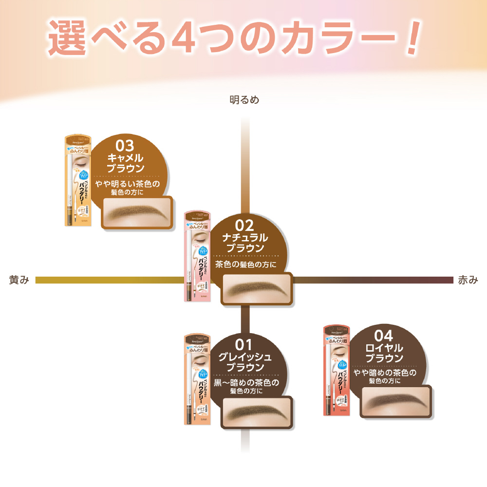 ペンシルなのにふんわりパウダリーな眉が完成!1本でペンシル&ブラシがついた2機能アイブロウペンシル。するする描けて夜まで落ちないウォータープルーフ処方。グレイッシュブラウン: 黒〜暗めの髪色の方に。