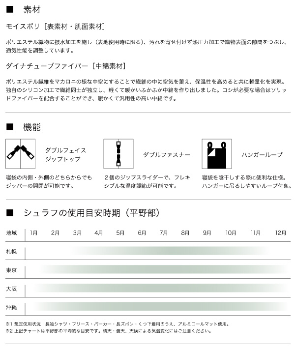 封筒型シュラフ 丸洗いスランバーシュラフ・-2 72602030【サイズ:80×190cm/適合胸囲:102cmまで/適正温度目安:-2度まで】