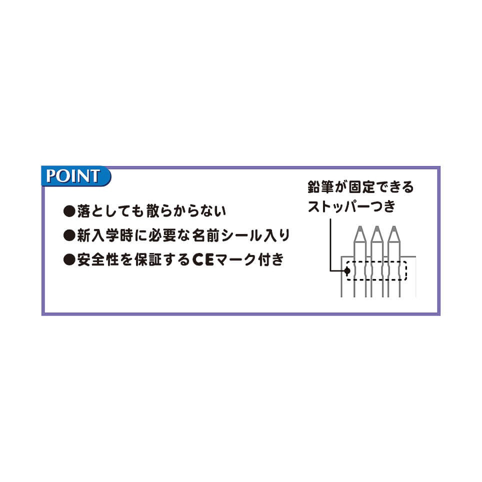 鉛筆が固定できるソフトケース入りなので、小学生が落としてもバラけず、音も大きくありません。