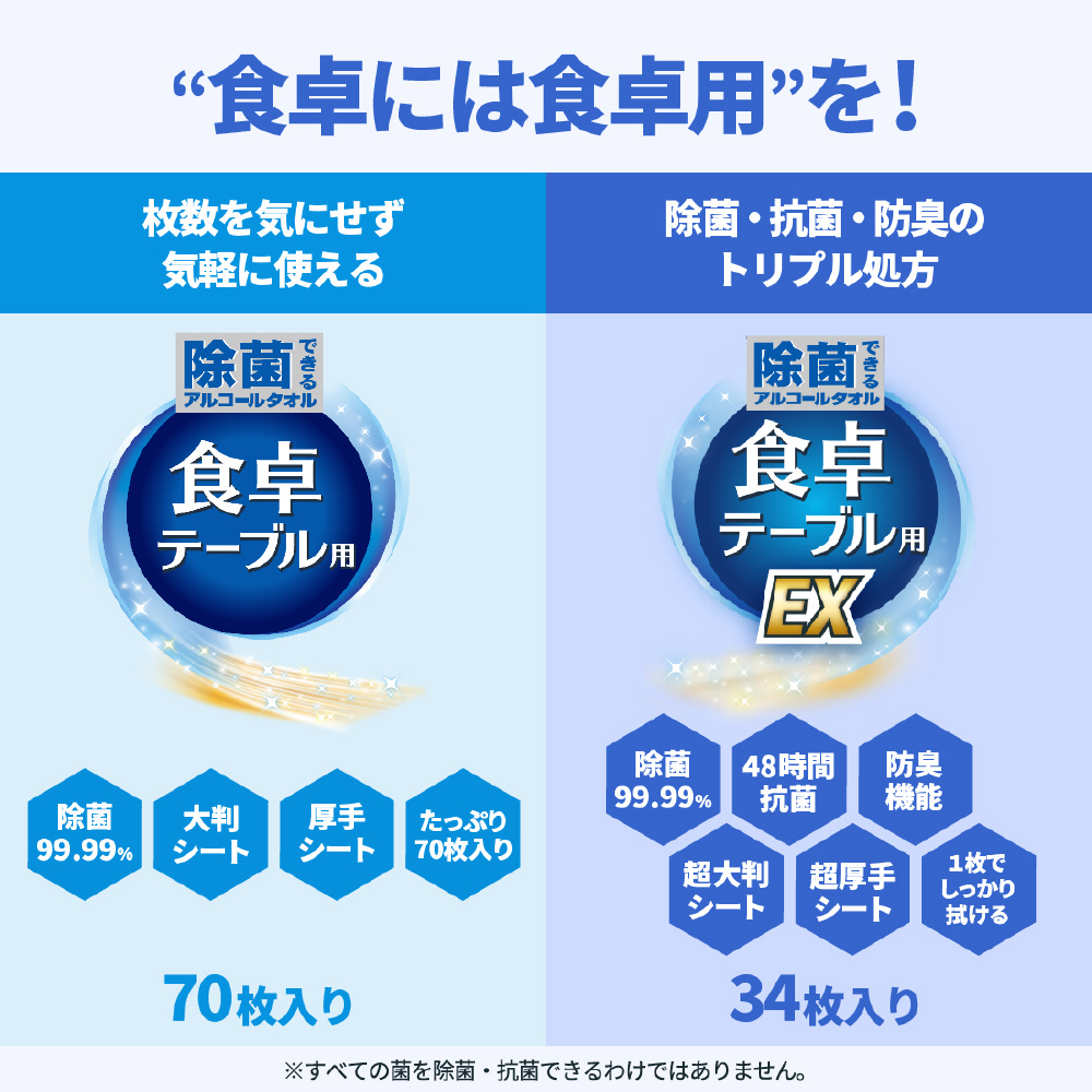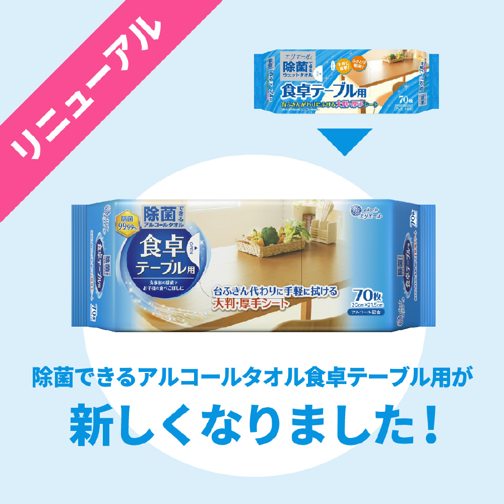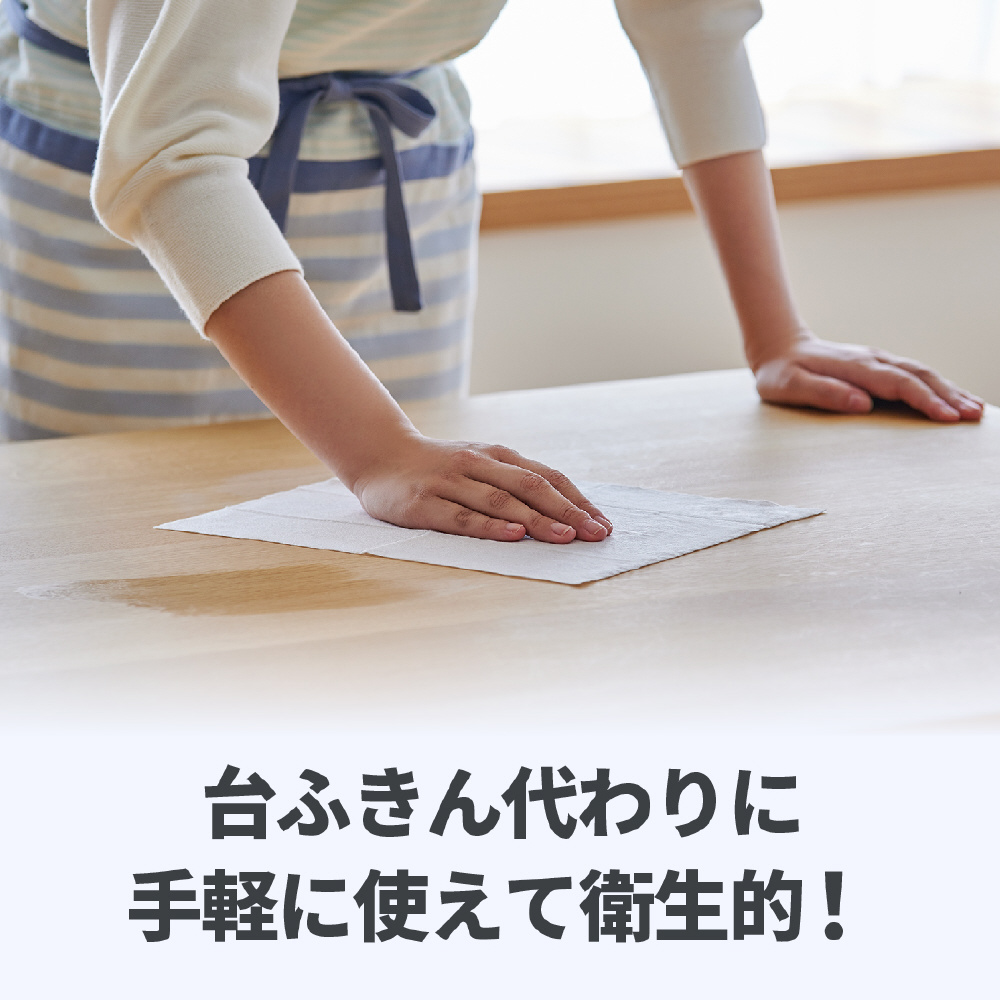 ■<アルコール配合>テーブル・キッチンまわりもサッとふけて除菌。ふいたあとすぐ乾きます。