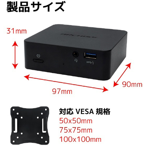 モニタの裏側に付属のVESAマウンタで取り付ければ、デスクスペースを有効活用できます。