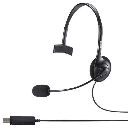 安定した装着感のUSB接続片耳ヘッドバンド式ヘッドセット