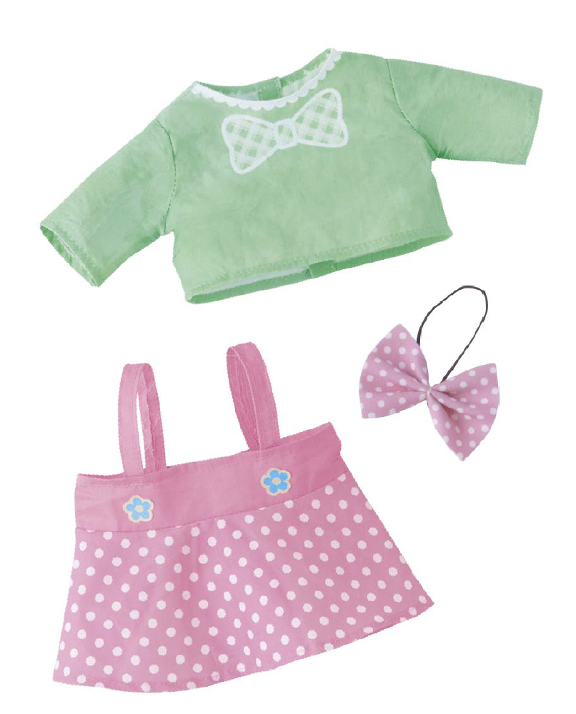 ・リボンプリントトップス ・ピンクのドット柄スカート ・リボンのヘアゴム