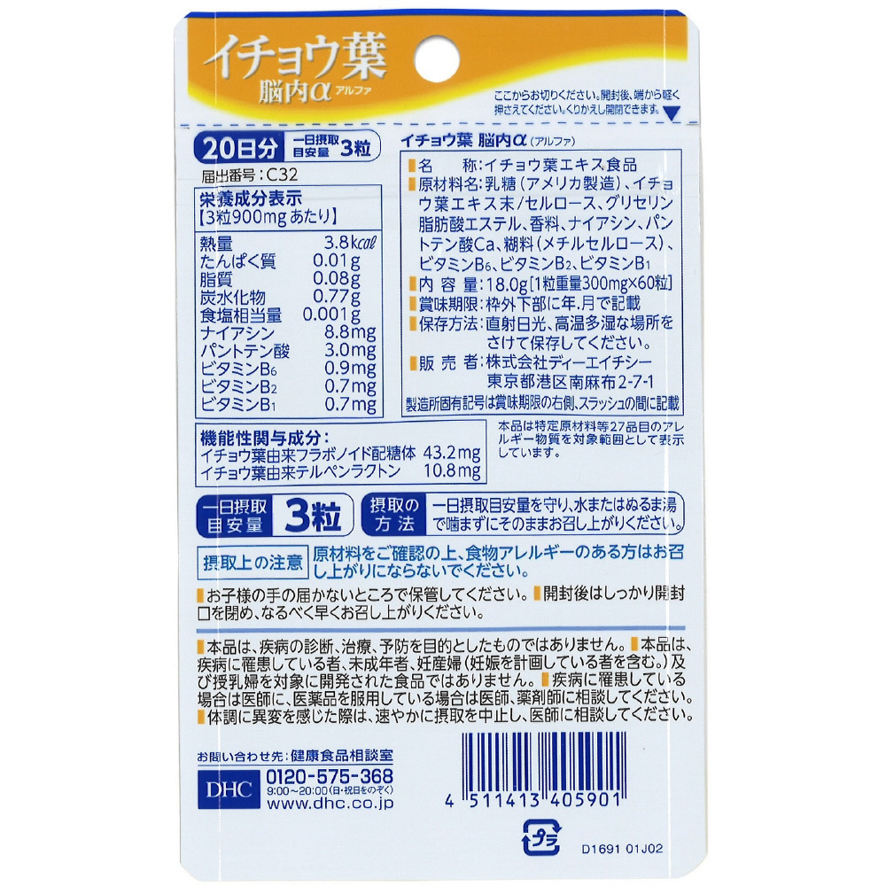 | 型番 | DHC20イチョウハノウナイ60ツブ |