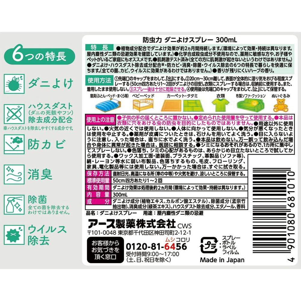 | 商品名 | ピレパラアース 防虫力 ダニよけスプレー(300ml)〔ダニ対策〕 |