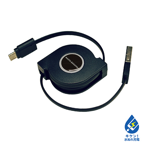 充電専用リールケーブルで最大約80cmまで伸縮可能