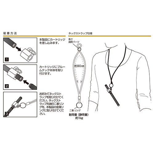| 仕様2 | ネックストラップで本体を首にかけて携帯可能 |