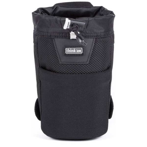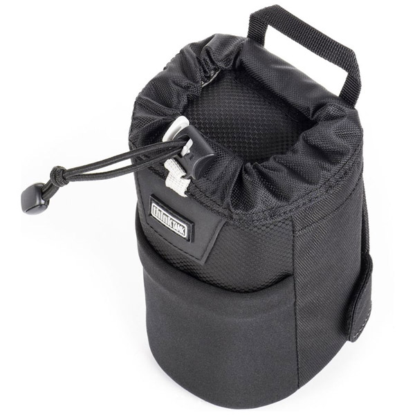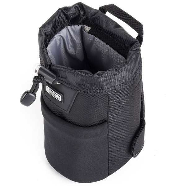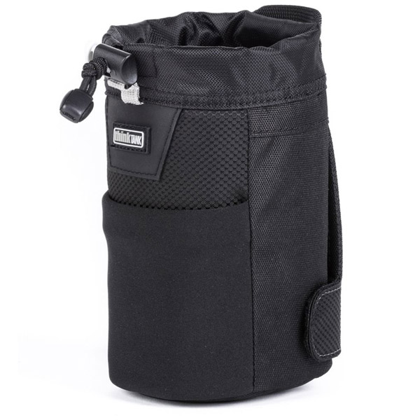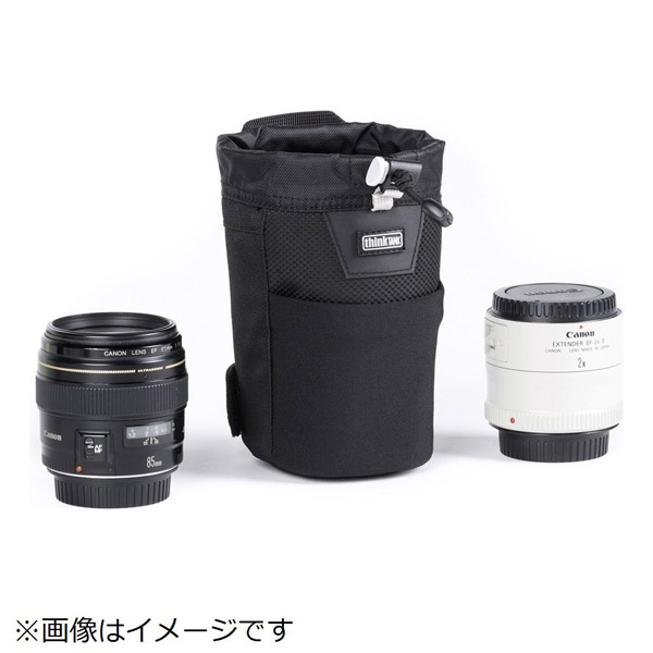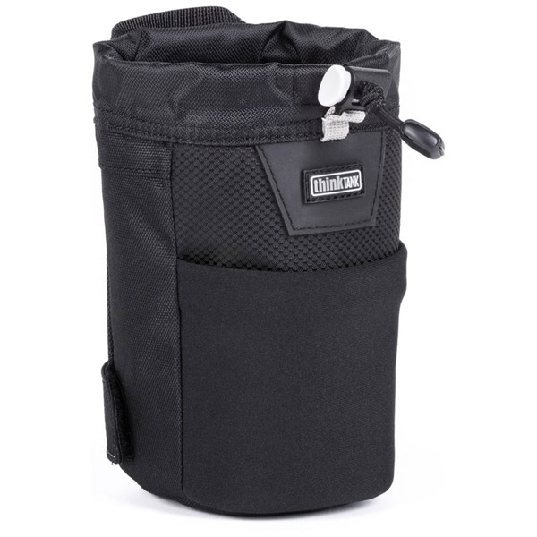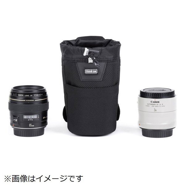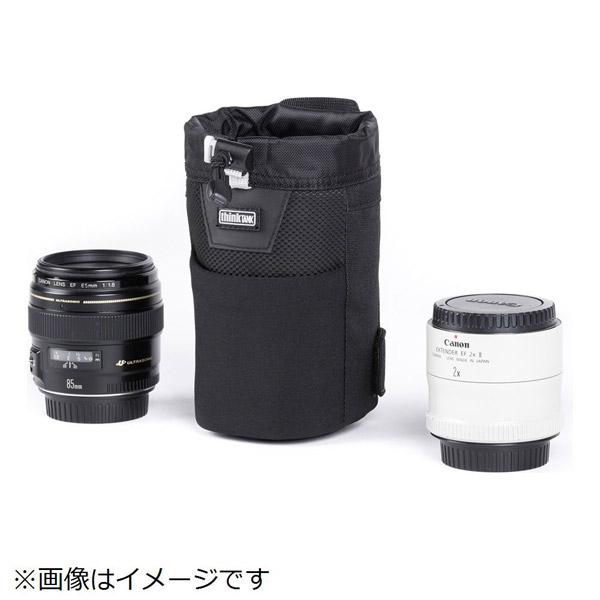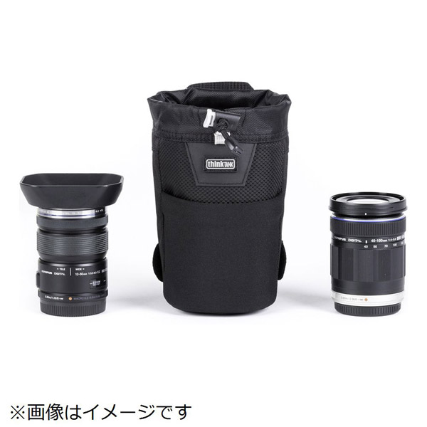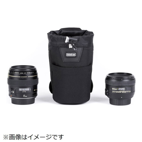 50mm F1.4 や85mm F1.8 などの単焦点レンズにフードを付けたまま収納できるレンズポーチです。