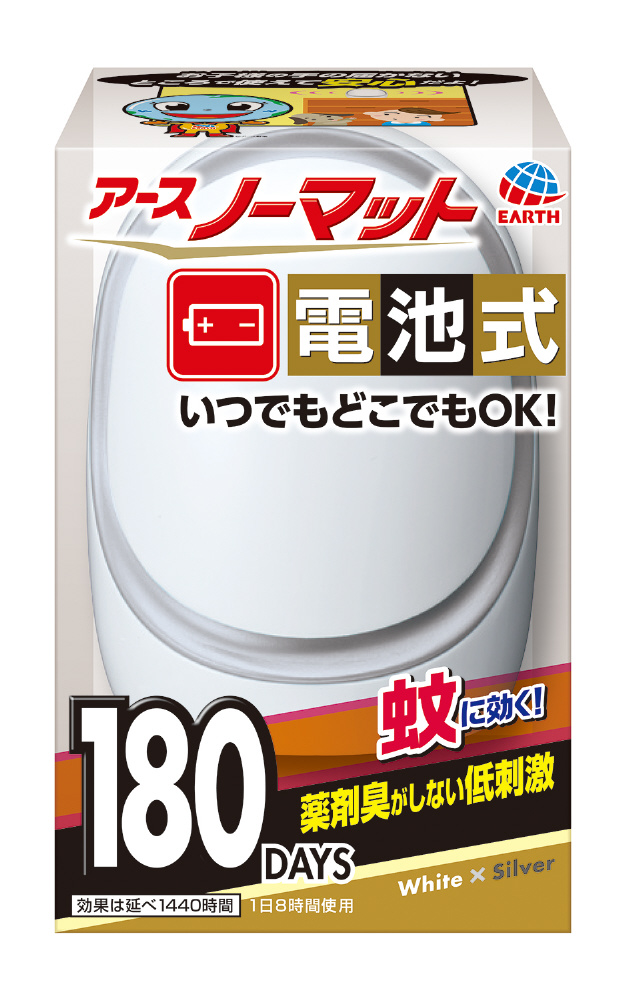 【在庫限り】 アース ノーマット電池式 180日セット ホワイトシルバー(1組)〔蚊取り用品〕
