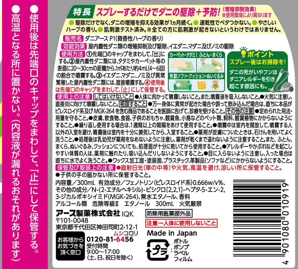 ダニアーススプレー ハーブの香り(300ml)〔スプレー〕