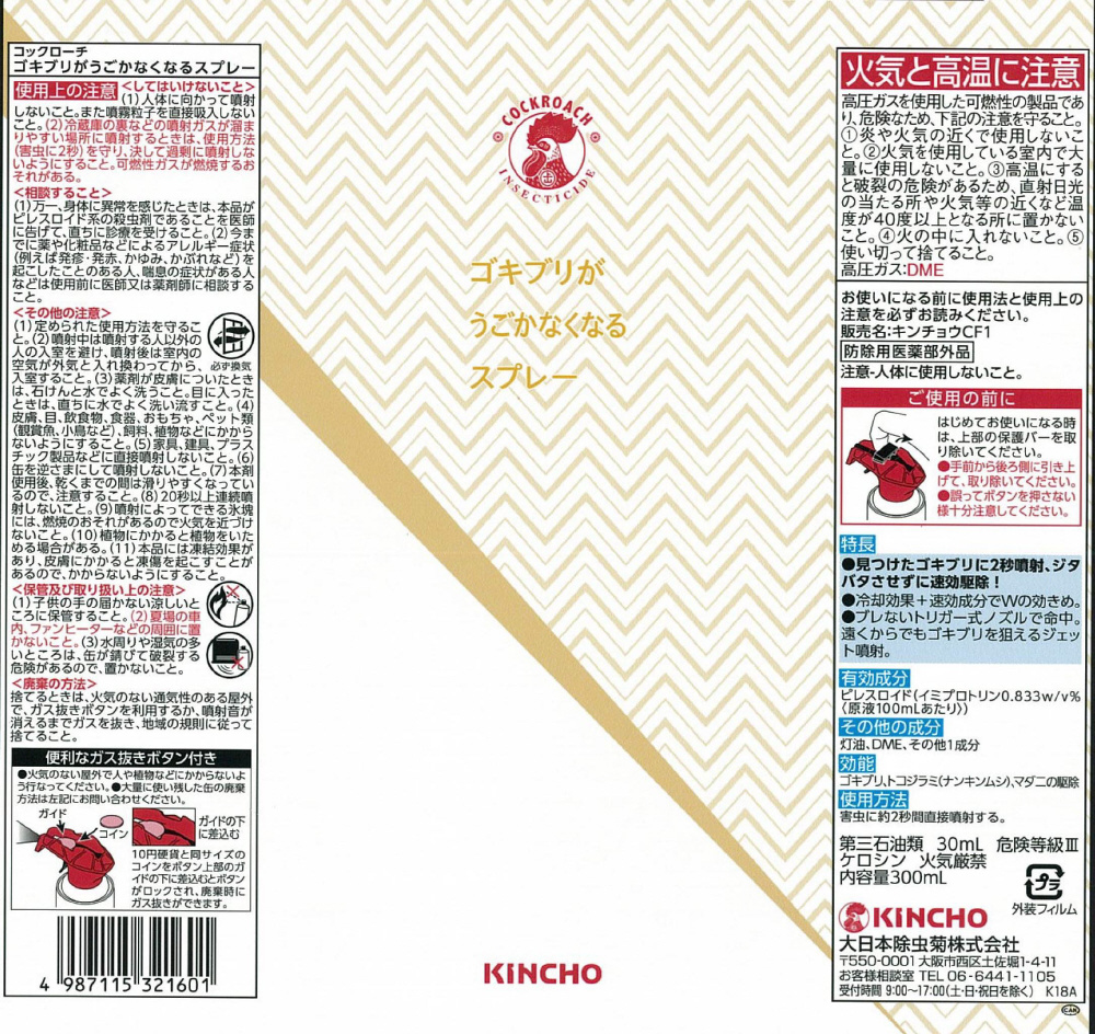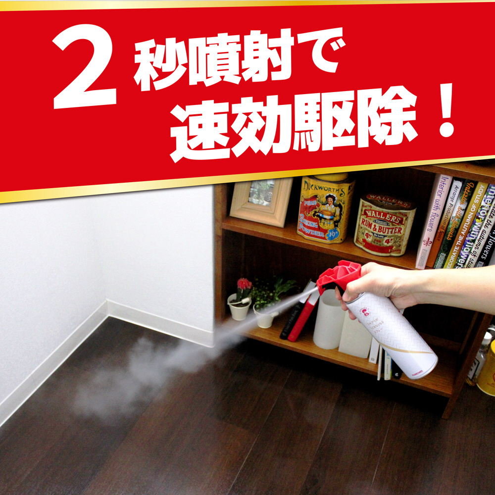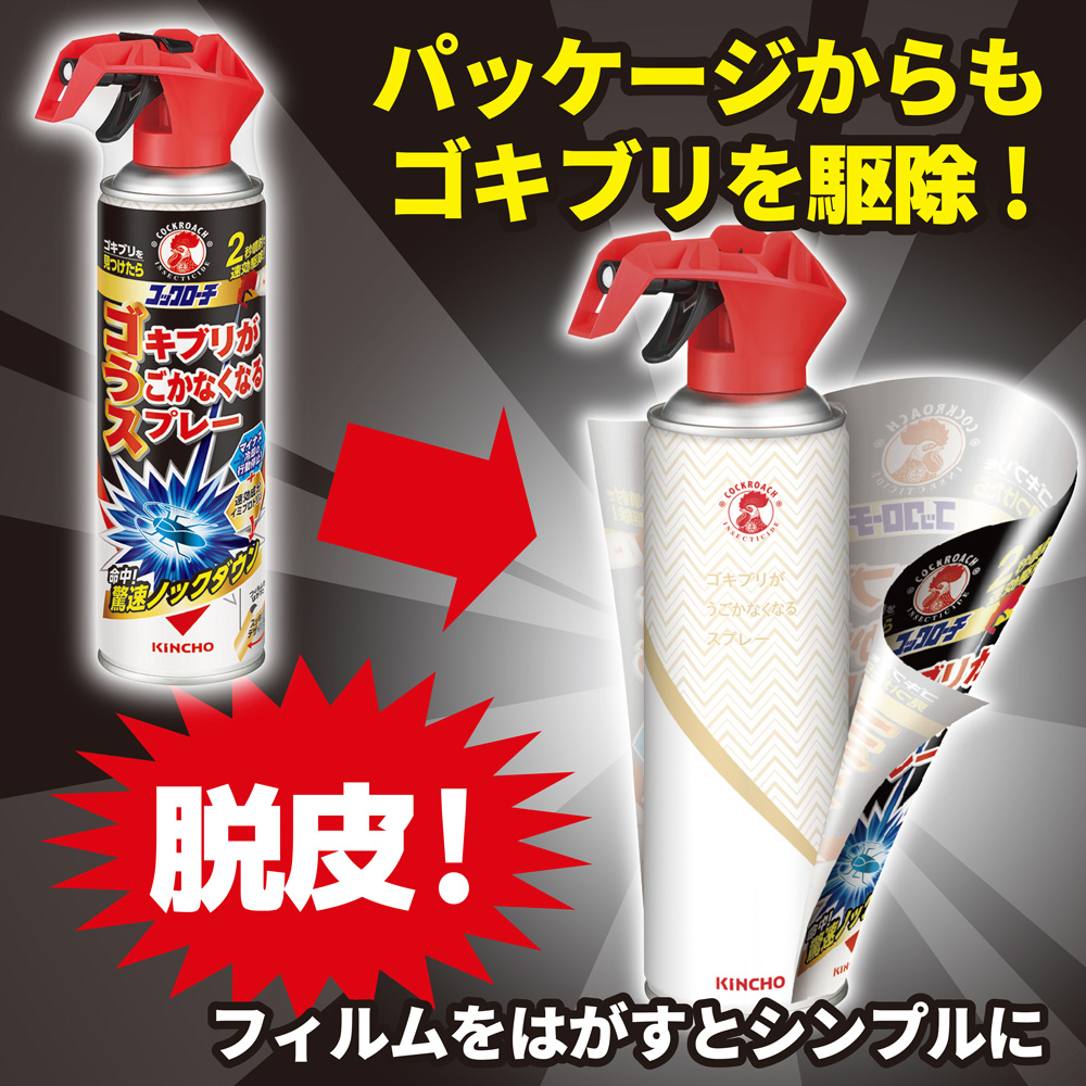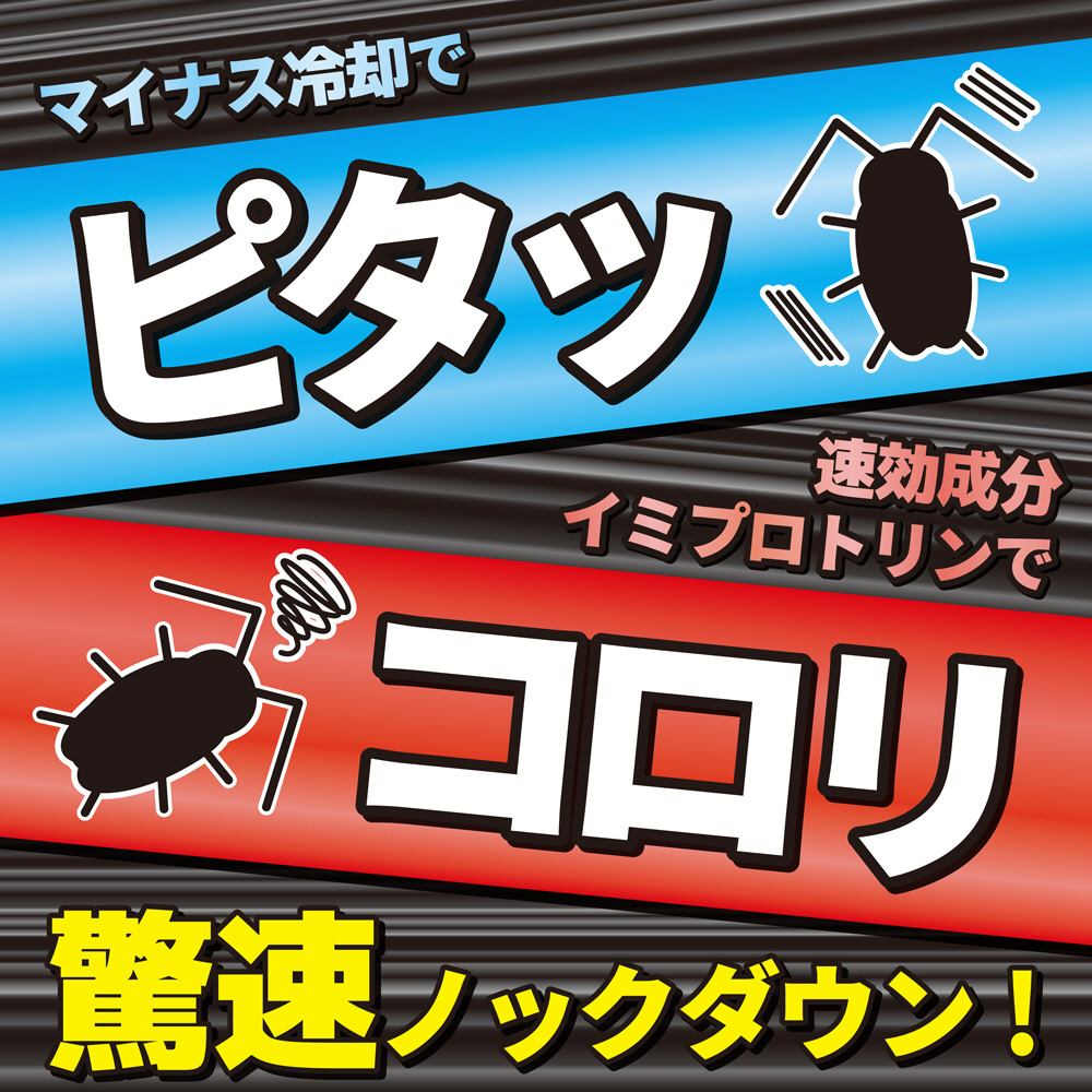 見つけたゴキブリを2秒噴射で速効駆除。マイナス冷却でゴキブリの動きをすばやく止め、速効成分で確実に退治します。フィルムをはがすとシンプルなデザイン缶に変身します。
