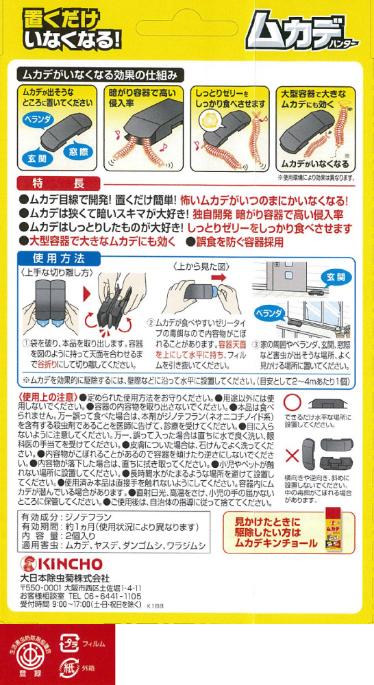 置くだけいなくなる ムカデハンター (2個) 〔置き型〕