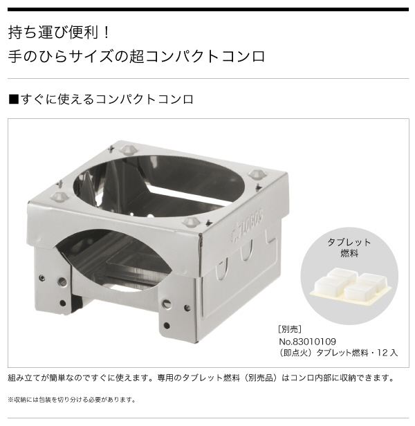 ●燃料は別売の専用燃料No.83010109 タブレット燃料をご使用ください ※付属はしていません