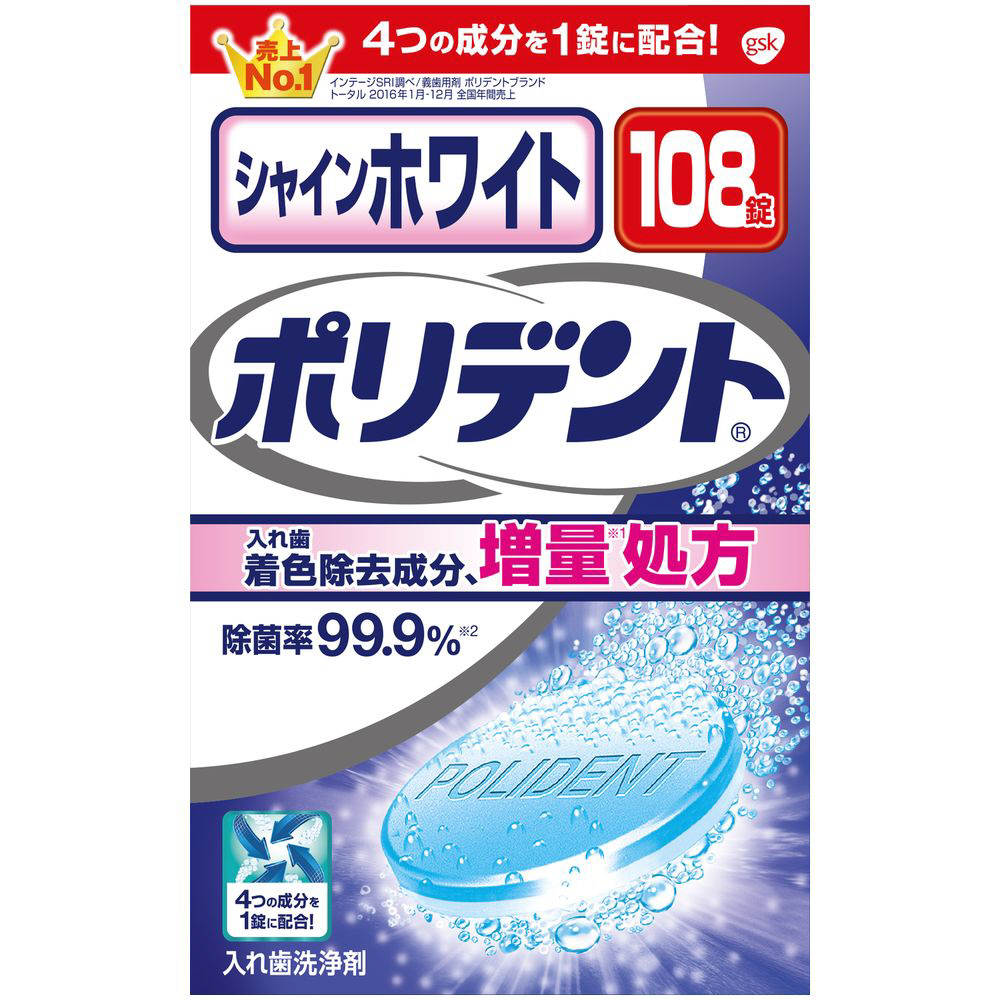 | 商品名 | シャインホワイト ポリデント (108錠) 〔入れ歯洗浄剤〕 |