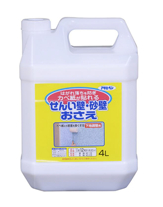 せんい壁・砂壁などに、カベ紙を貼る時の下地調整用塗料で、壁面を補強してはがれ落ちを防ぎ、カベ紙との密着を強化します。