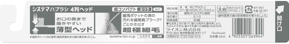 | 商品名 | システマ ハブラシ 超コンパクト 4列 ふつう (1本) 〔歯ブラシ〕 【864】 |