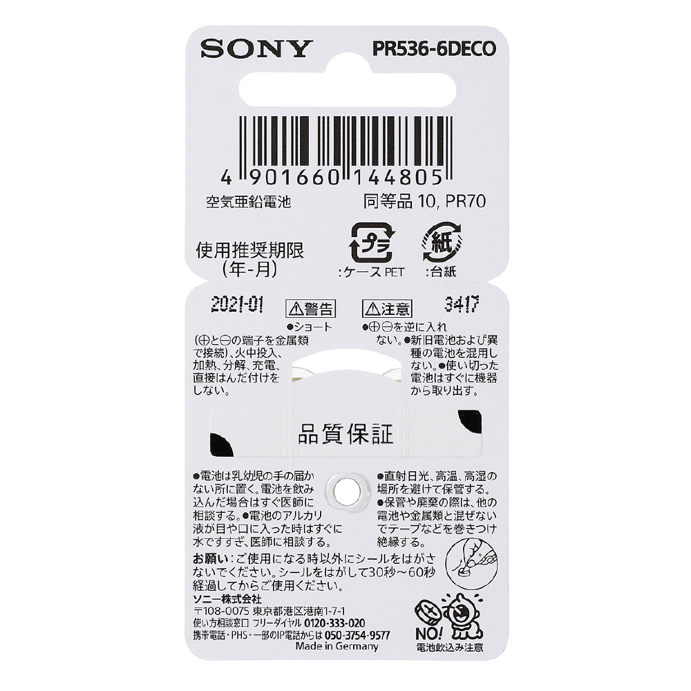 【在庫限り】 補聴器用電池 空気電池 PR536-6DECO [6個]