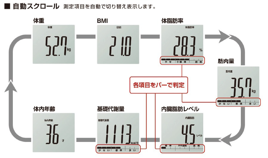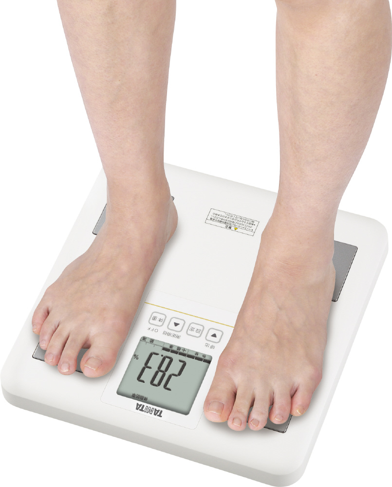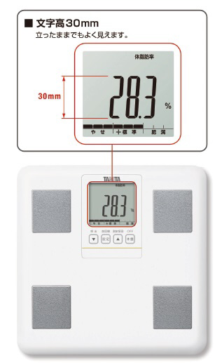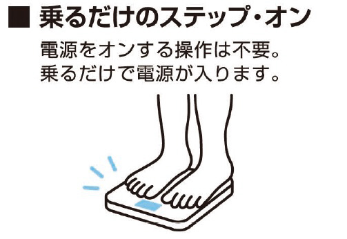 乗るだけで電源が入るので測定がラクラク。表示の文字高30mmなので立ったままでも数値がよく見えます。