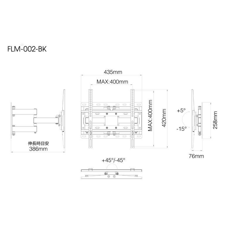 ウォールフィットマウント 推奨テレビサイズ 26〜55V FLM-002-BK ブラック