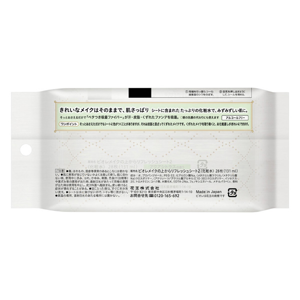 きれいなメイクはそのままで、肌さっぱり。大判ウェットタイプのシートに含まれたたっぷりの化粧水で、みずみずしい肌に。